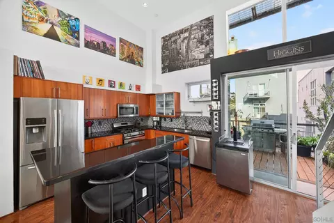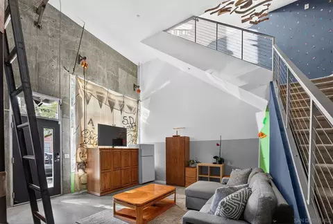 An extraordinary 4-level live/work industrial loft in Barrio Logan that seamlessly blends architectural drama with refined urban living. Designed for flexibility, the home offers 3 en-suite bdrms and a versatile 2nd floor open space perfect for an office, studio, or 4th bdrm. Defined by 20-foot soaring ceilings, the living room with view balcony is open to the stylish kitchen with large patio. The street level entry space uniquely accommodates a potential client-facing business making it ideal for entrepreneurs seeking a true live/work lifestyle.