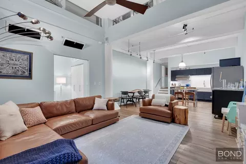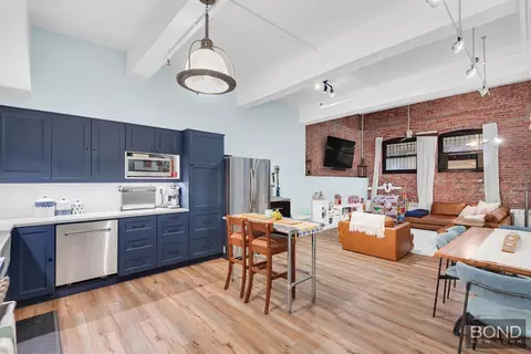 443 12th Street, Unit 1H/ Park SlopeA distinctive brick-and-beam duplex loft in the iconic Ansonia Storage Warehouse, this recently renovated home spans over 1,800 square feet across two expansive levels and lives like a private residence. With parking conveniently located next door, this home offers a combination of scale, character, and flexibility that is difficult to replicate.The upper level features soaring 13'7" ceilings and an expansive open living area ideal for entertaining. An elevated primary suite is defined by glass transoms and a sliding barn door, with exposed brick, generous closet space, and architectural separation from the main living space. A second open bedroom connects to a lofted bonus areaideal for a home office, creative studio, reading nook, or play spaceaccessed via a ships ladder. This level also includes a full bathroom, extensive custom storage, and a discreetly integrated workspace.Throughout the home, original loft details set this residence apart, including exposed brick and beams, architectural columns, cable railings, and newly installed flooring that adds warmth and continuity across both levels.The lower level is anchored by a fully renovated chefs kitchen featuring custom millwork, new stainless steel appliances, and stone countertops. The kitchen opens seamlessly to a contemporary dining area and a spacious room, reinforcing the homes open and versatile layout. This level also includes an additional bedroom, a full bathroom, and a new full-sized laundry setup.Residents enjoy access to a finished rooftop deck with sweeping, unobstructed views of the Manhattan skyline and the Statue of Liberty, complete with seating, grills, and garden areas.443 12th Street is a professionally managed, pet-friendly elevator building with a relaxed, close-knit community. Ideally located near the F train, Prospect Park, the Bartel-Pritchard Square Greenmarket, and South Slopes vibrant dining and shopping.***To see our virtual tour, please reach out directly the seller agent***BOND New York Properties is a licensed real estate broker that proudly supports equal housing opportunity.